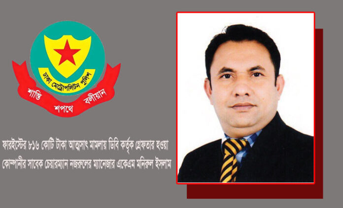 জালিয়াতির মাধ্যমে ৮১৬ কোটি টাকা আত্মসাতের অভিযোগে ফারইস্টের করা মামলায় কোম্পানির সাবেক চেয়ারম্যান মো. নজরুল ইসলামের ম্যানেজার এ.কে.এম মনিরুল ইসলামকে আটক করেছে ঢাকা মেট্রোপলিটন গোয়েন্দা পুলিশ(ডিবি)।